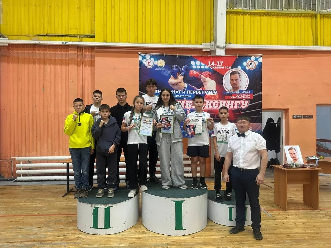 14-17 октябрҙә Өфөлә кикибоксинг буйынса республика беренселеге һәм чемпионат үтте. Ул кикбоксинг буйынса Рәсәй спорт мастеры, Бөтә Рәсәй ярыштары призеры, билдәле тренер Михаил Уразбахтиндың иҫтәлегенә ойошторолдо. Барлыҡ республиканан 597 спортсы ҡатнашҡан чемпионатта Мәҙинә Аразбаева һәм Сынтимер Фәйзуллин үҙ ауырлыҡтарында беренсе, ә Азиза Хәсәева икенсе урын яуланы. Был бик яҡшы һөҙөмтә!